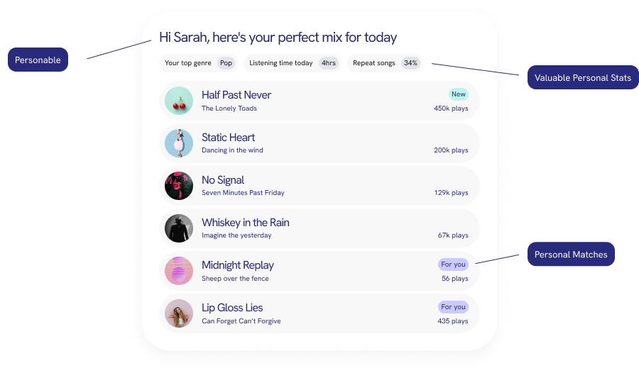 When a music app suggests songs you might enjoy, or an online shop remembers your size, that's personalisation at work. It uses information about your choices to make your online experience more relevant and helpful, saving you time searching through options that aren’t useful or suitable for you.